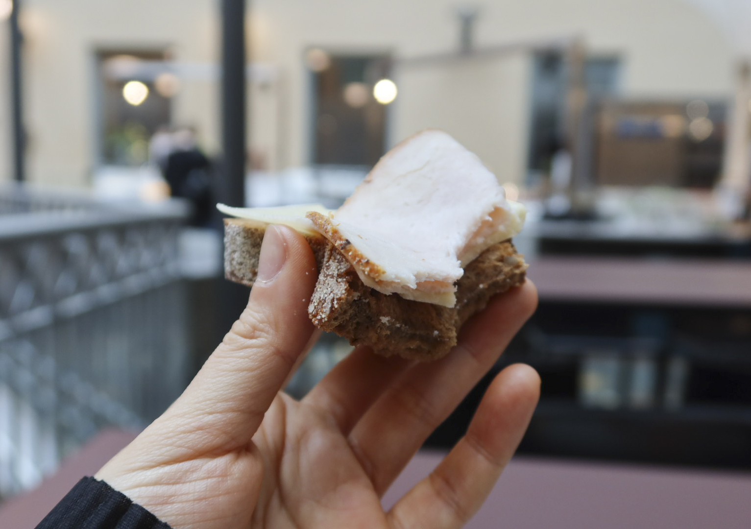 하루는 다른 치즈를 골라 보았다. 구멍이숭숭뚫린 조금 더 강력한 스웨디시치즈였다. 그 꼬릿하고담백한맛은 입안을 타고 실실웃음마저 새어 나오게 했다. 내 몸에 남은 긴장감까지 여과 없이 숭숭 뚫리고 풀리는 기분이랄까. 이 맛을 골고루 오래 기억하고 싶어 계속 오물거렸다.