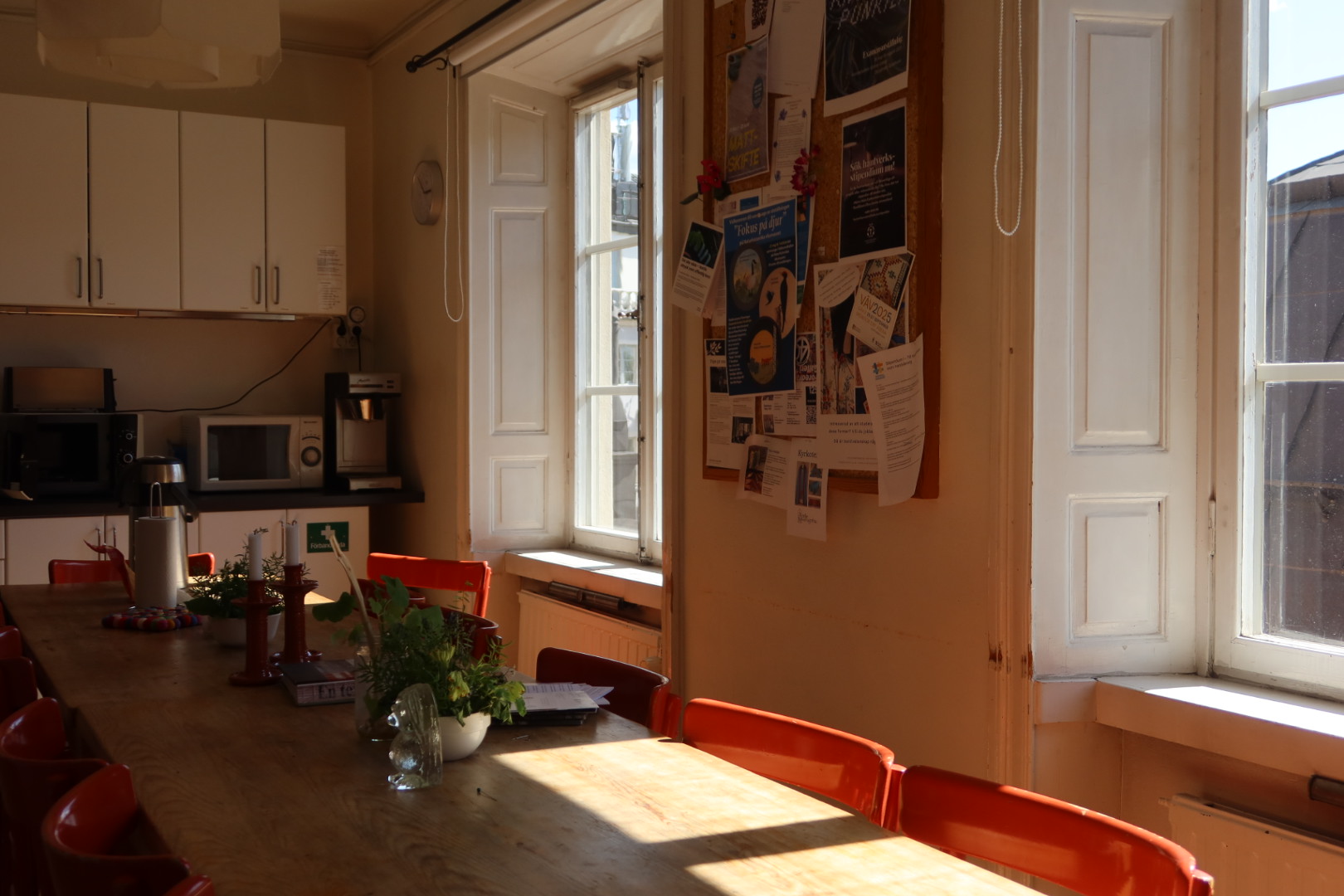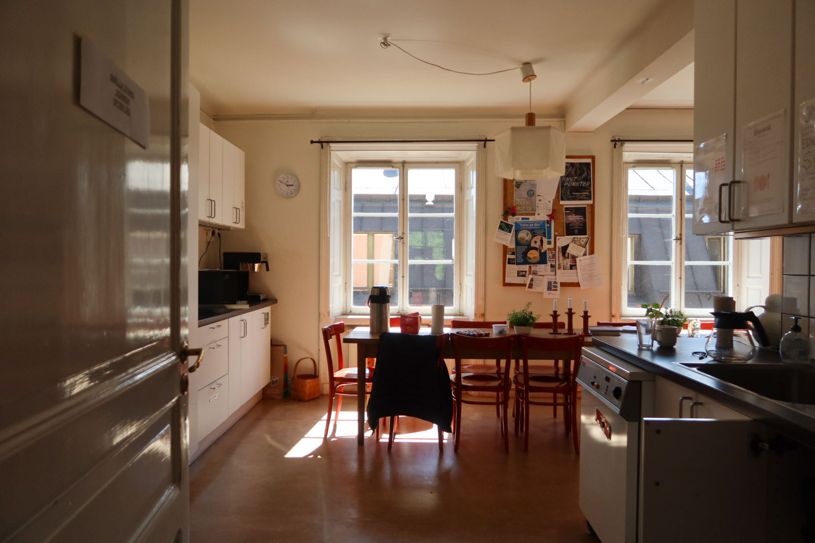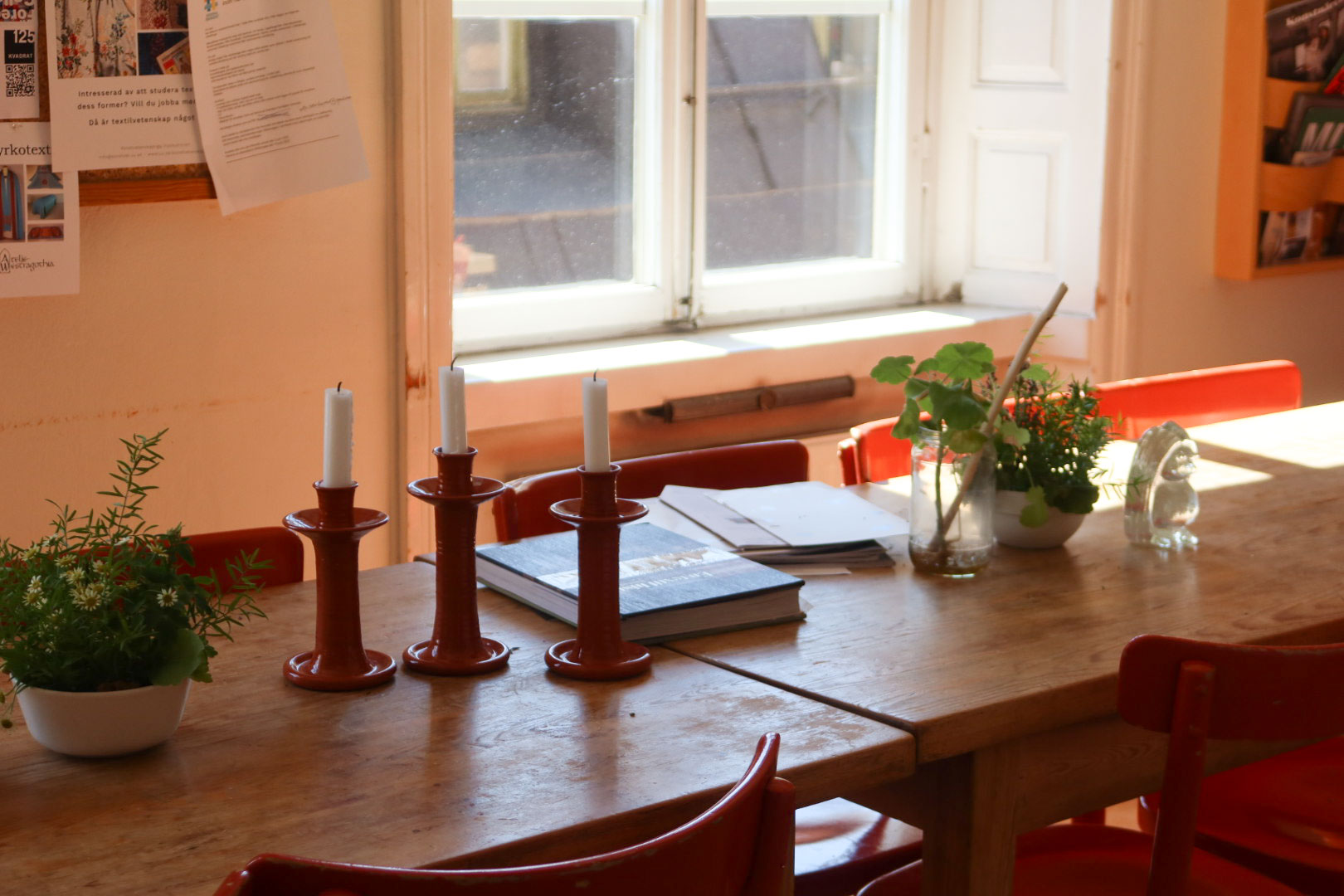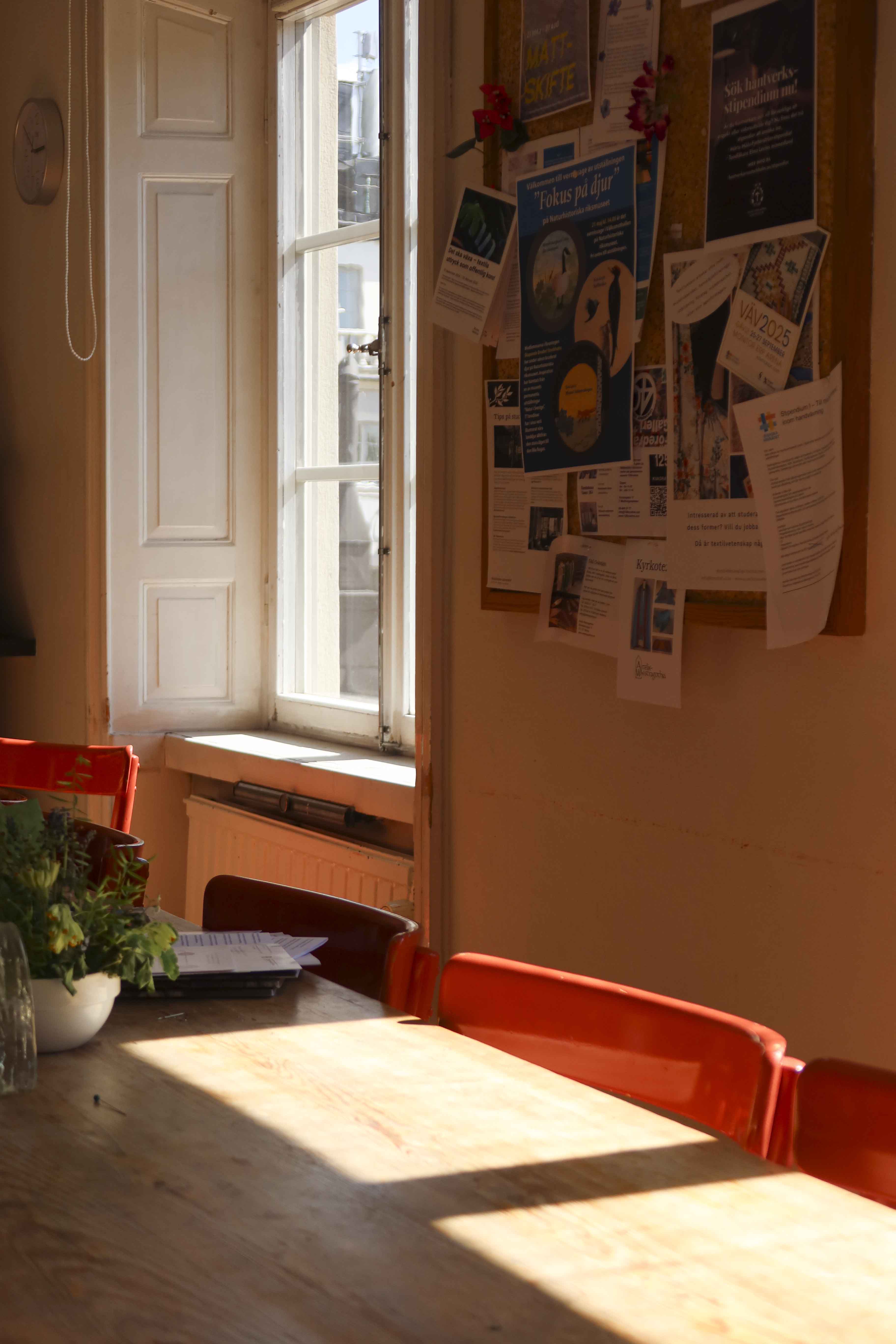 이 학교 안에는 지극히 평범하지만 여러 세월이 담긴 물건들이 있다. 예를 들면 노르스름한 흰색을 띠는 부엌 상부장과 하부장, 성실하게 이어 붙인 타일, 그리고 아주 오래된 모델의 식기 세척기가 있다. 그 옆으로는 빛바랜 색이 담긴 책상과 짙은 감귤색 의자가 나란히 있다. 수업을 마친 학생들의 피카(Fika: 커피와 함께하는 휴식 시간)를 위한 장소라고 한다. 책상 위로 올려진 귀여운 촛대와 작은 식물들은 마치 그들이 둘러앉아 나누던 정다운 이야기의 자욱 같았다.