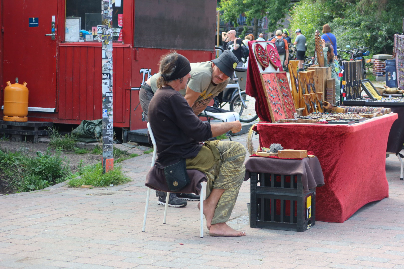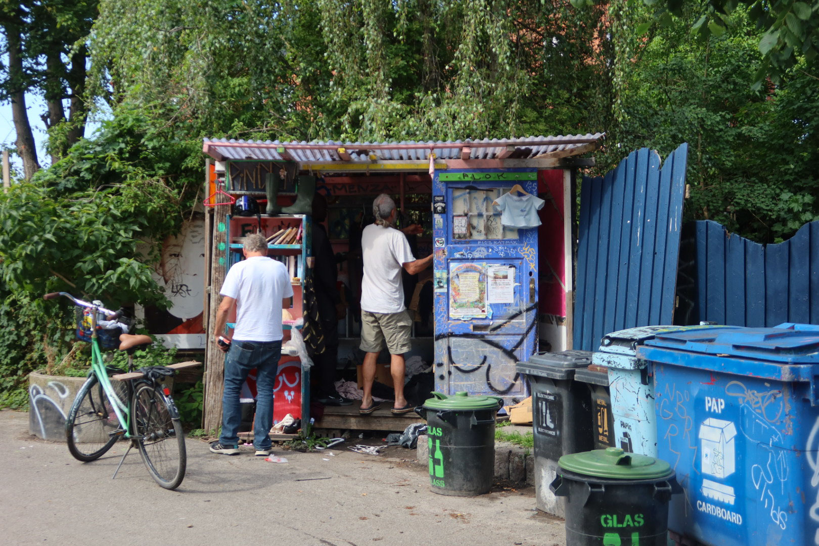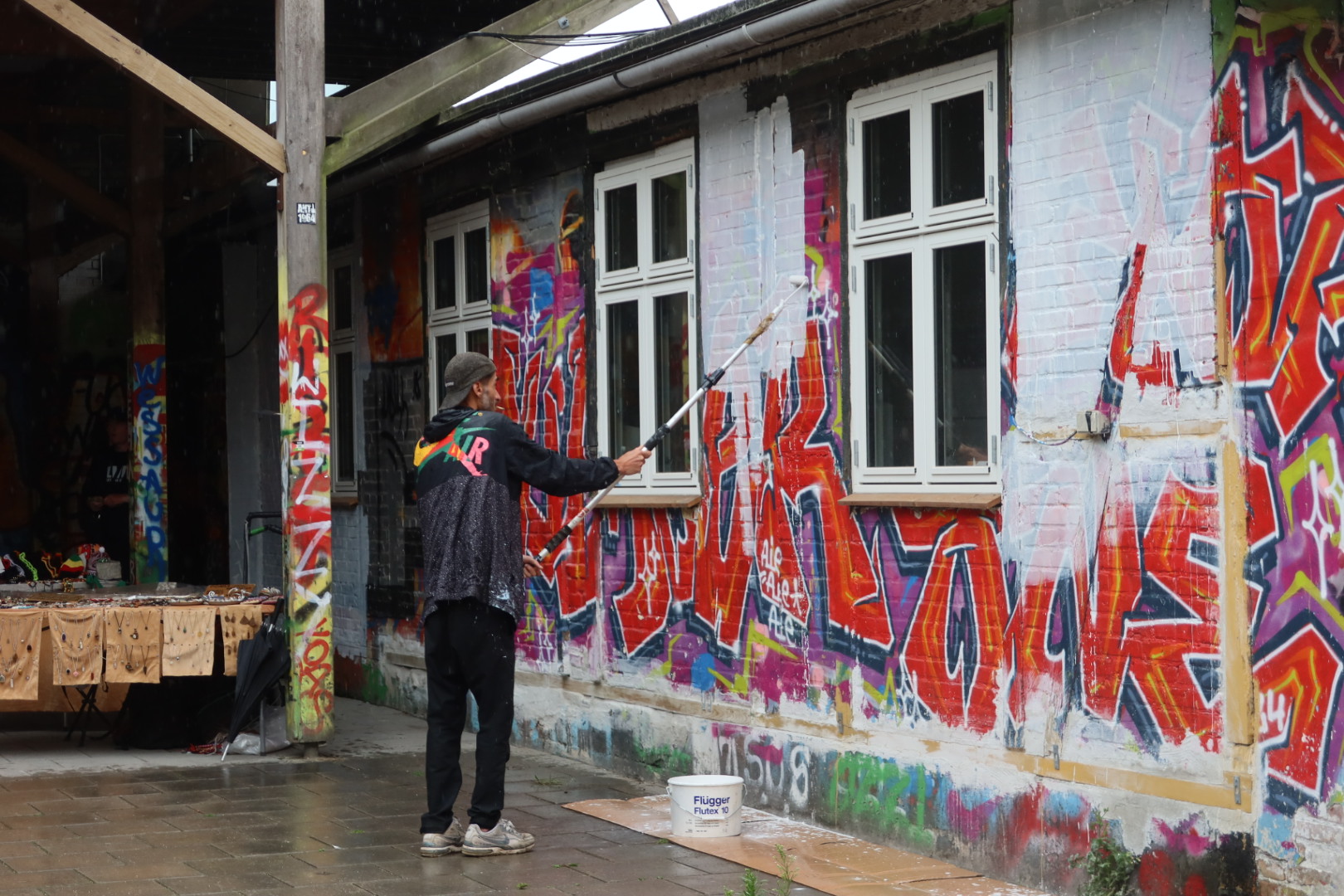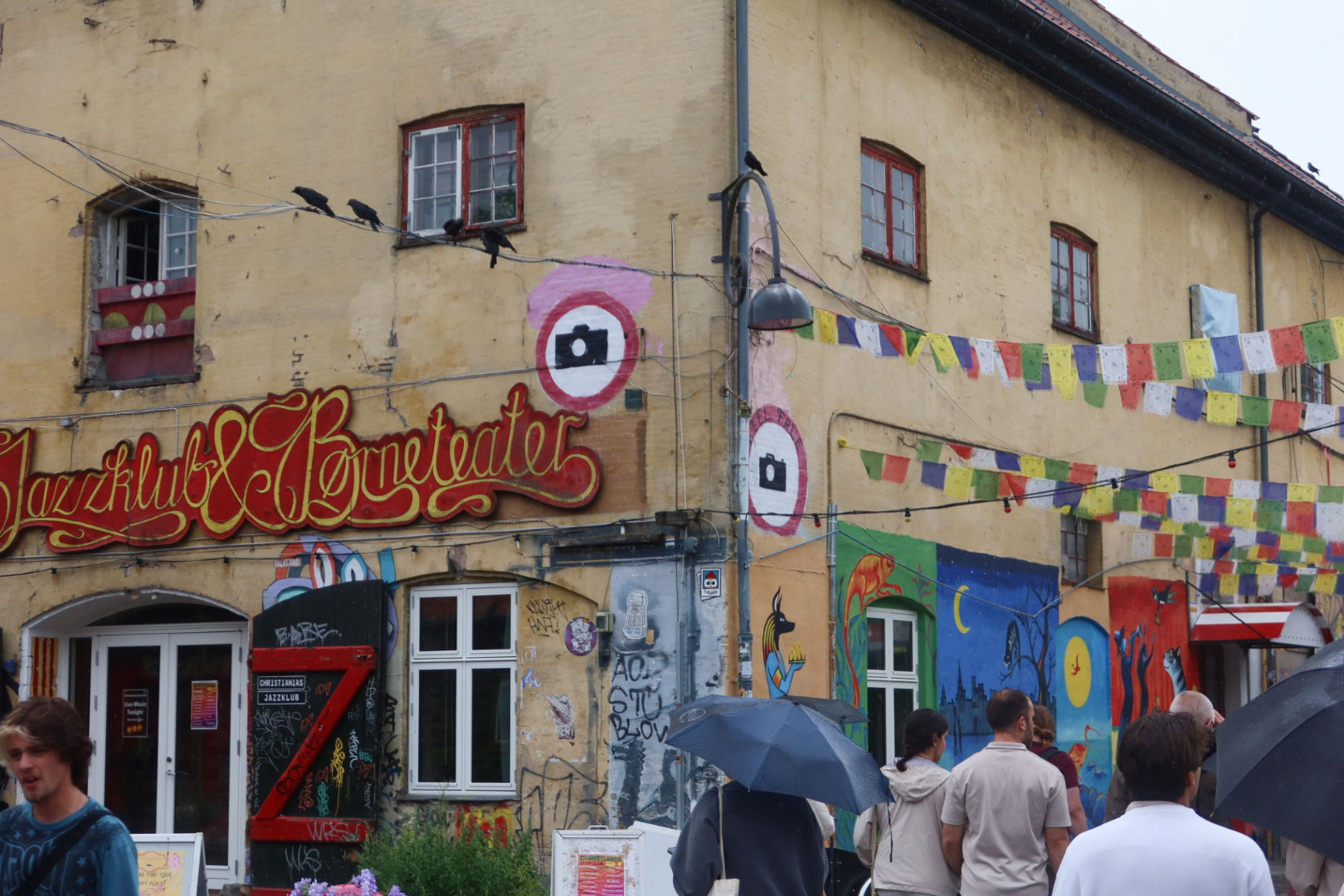 화려한 그라피티가 덮인 벽돌 건물을 따라 거닐었다. 두 개의 기둥을 사이에 두고 나무판자에 깊게 새겨진 단어. CHRISTIANIA. 노란 동그라미 세 개가 그려진 붉은 깃발이 바람에 흩날린다. |