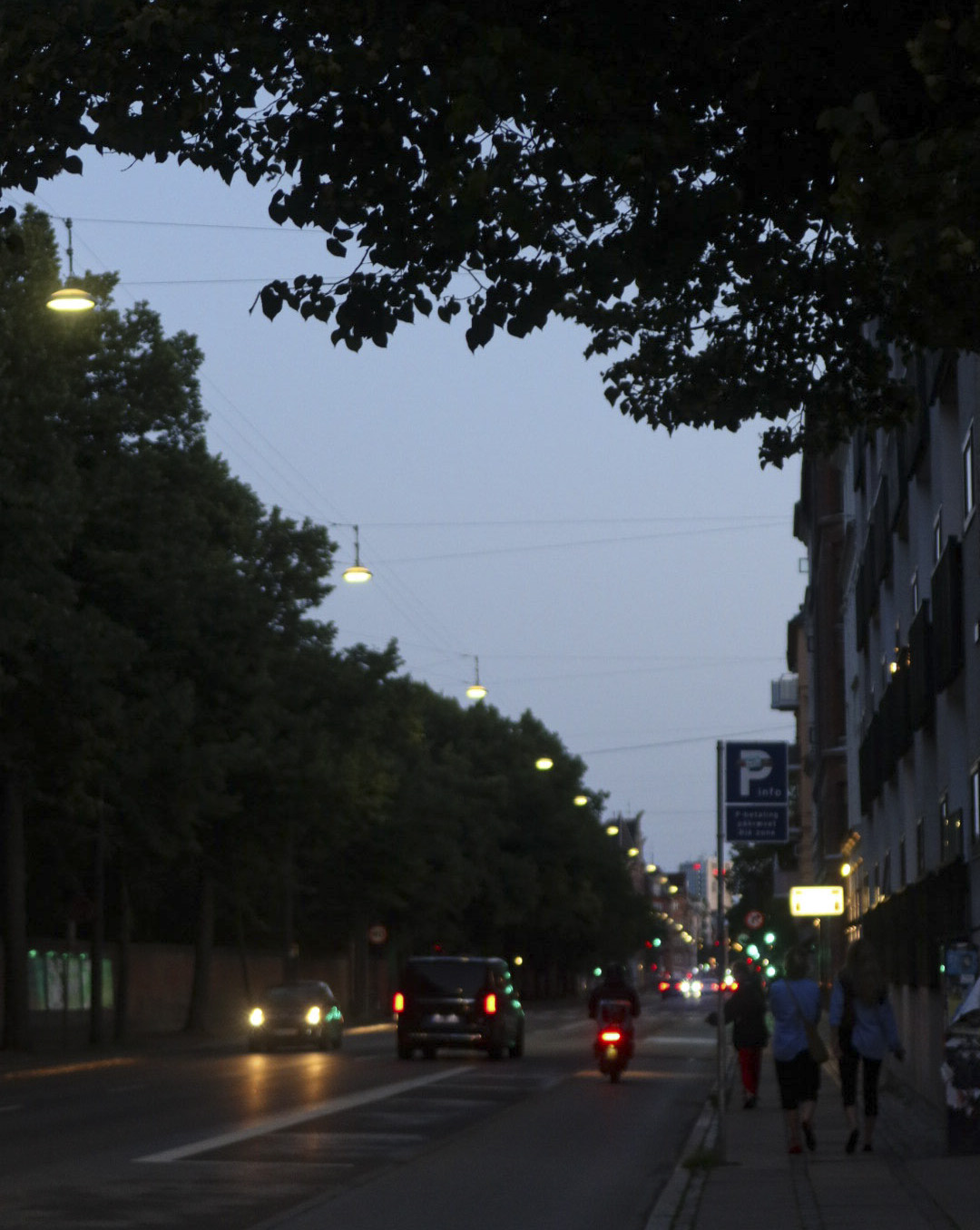 도로 한가운데 달린 타원형의 가로등. 여행자 전용 렌즈를 장착한 눈에는 작고 귀여운 종처럼 보인다. 아래로 지나가면 따뜻한 차임벨이 울려 퍼질 것만 같다. 낭만이 대롱대롱 매달려 있다. |